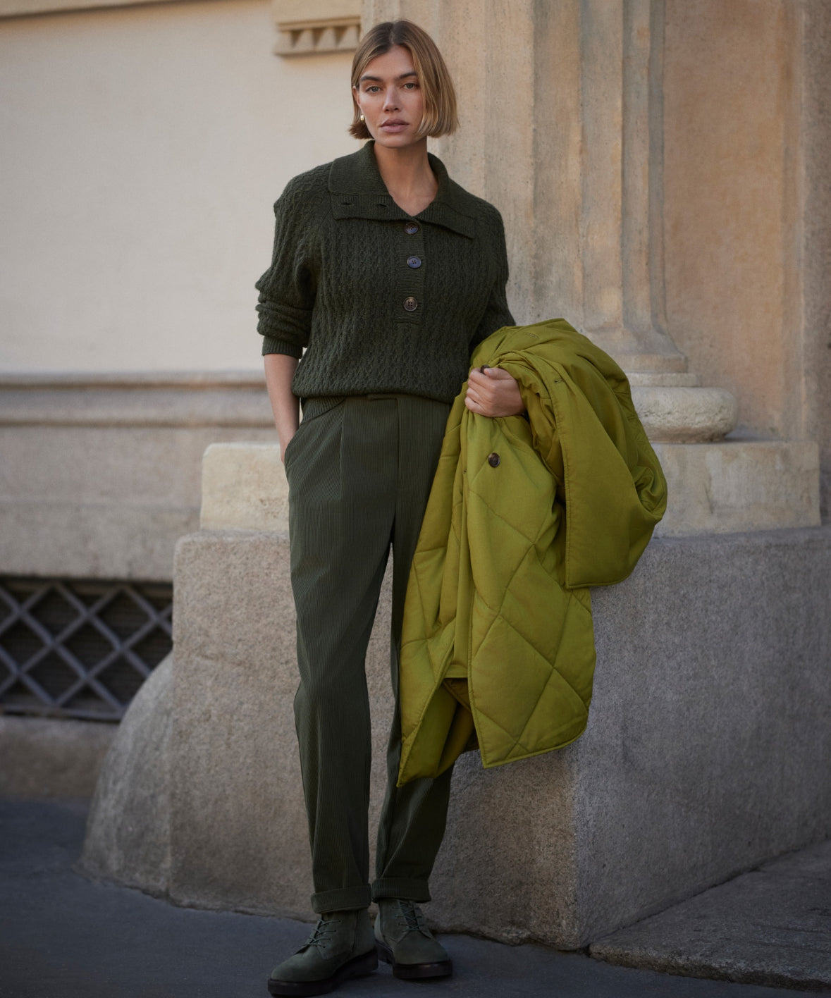 Warm, comfy. It’s just structured enough to be more professional looking. Almost wish it came in more colors!