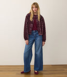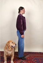 Burgundy Velvet Quilted Bomber Jacket