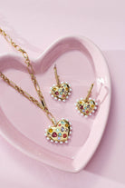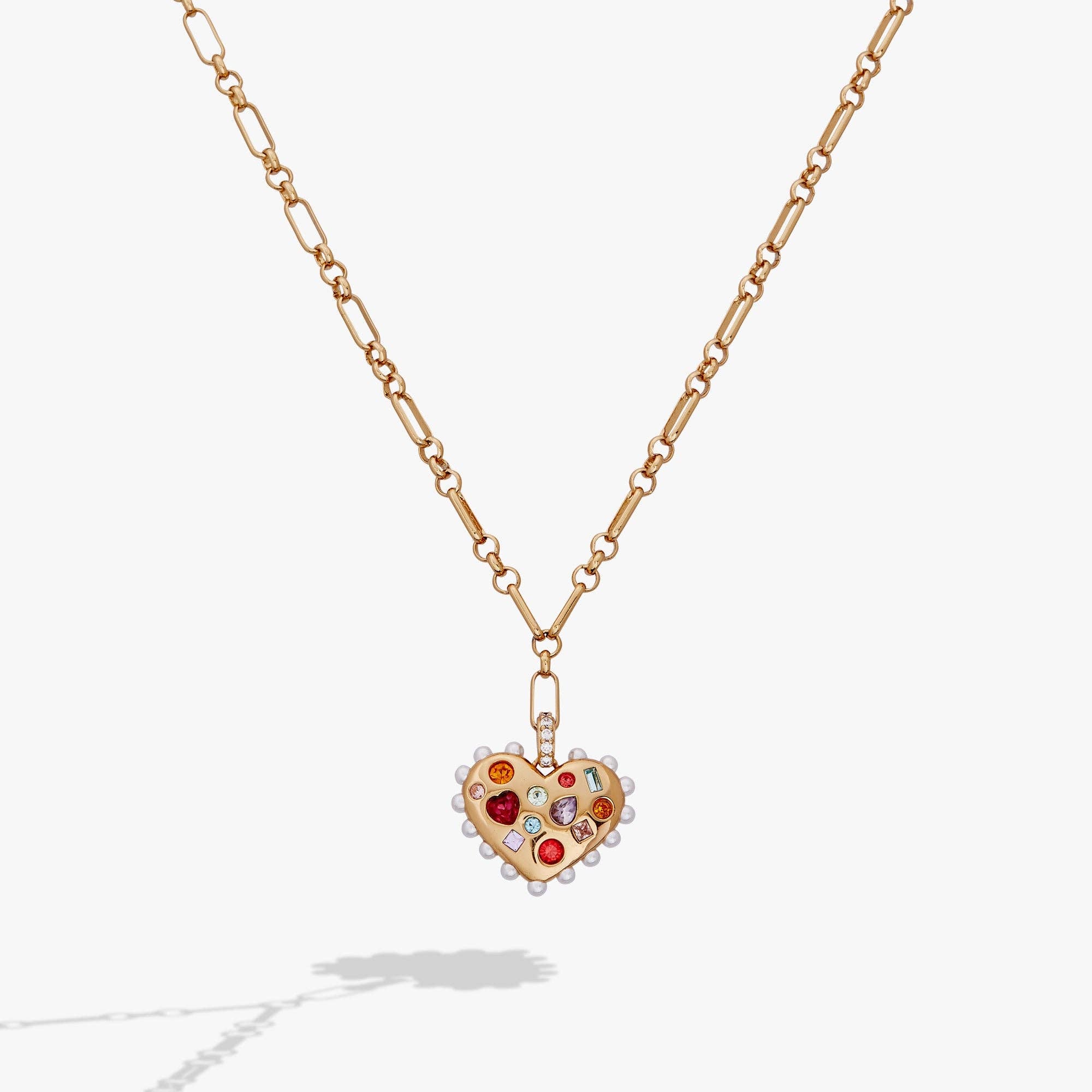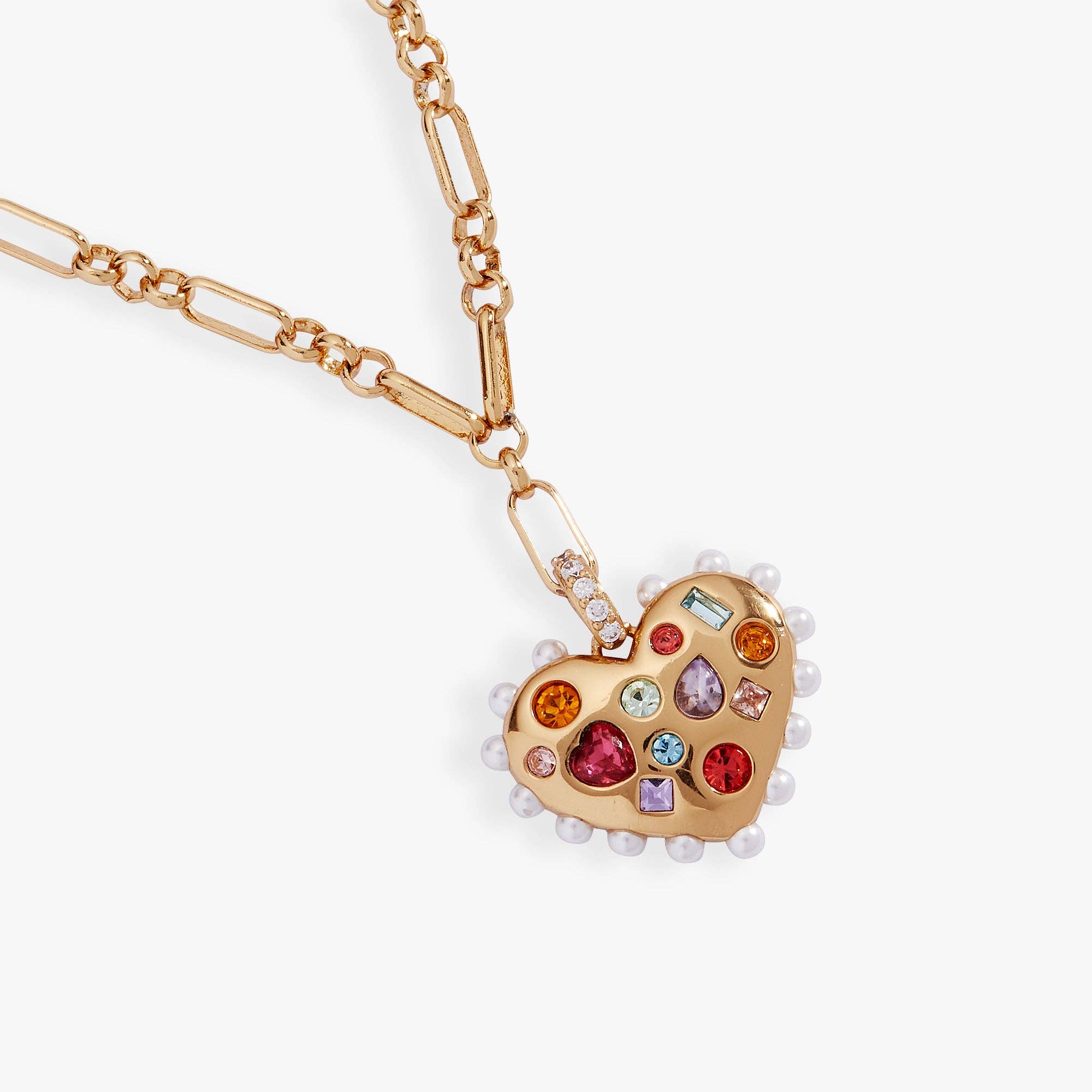 Puffy Heart Gemstone And Pearl Pendant Necklace