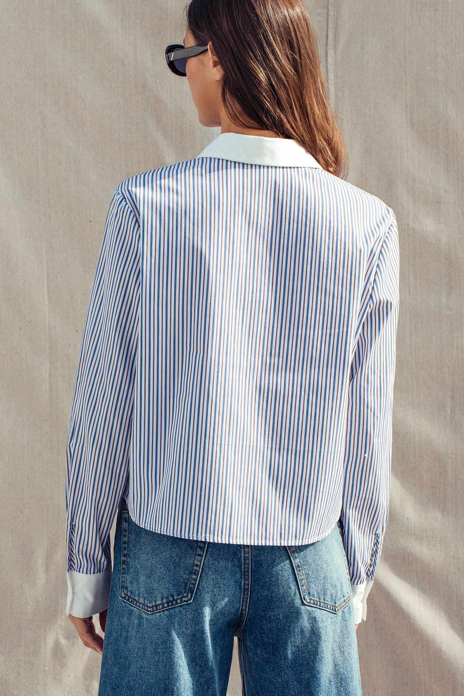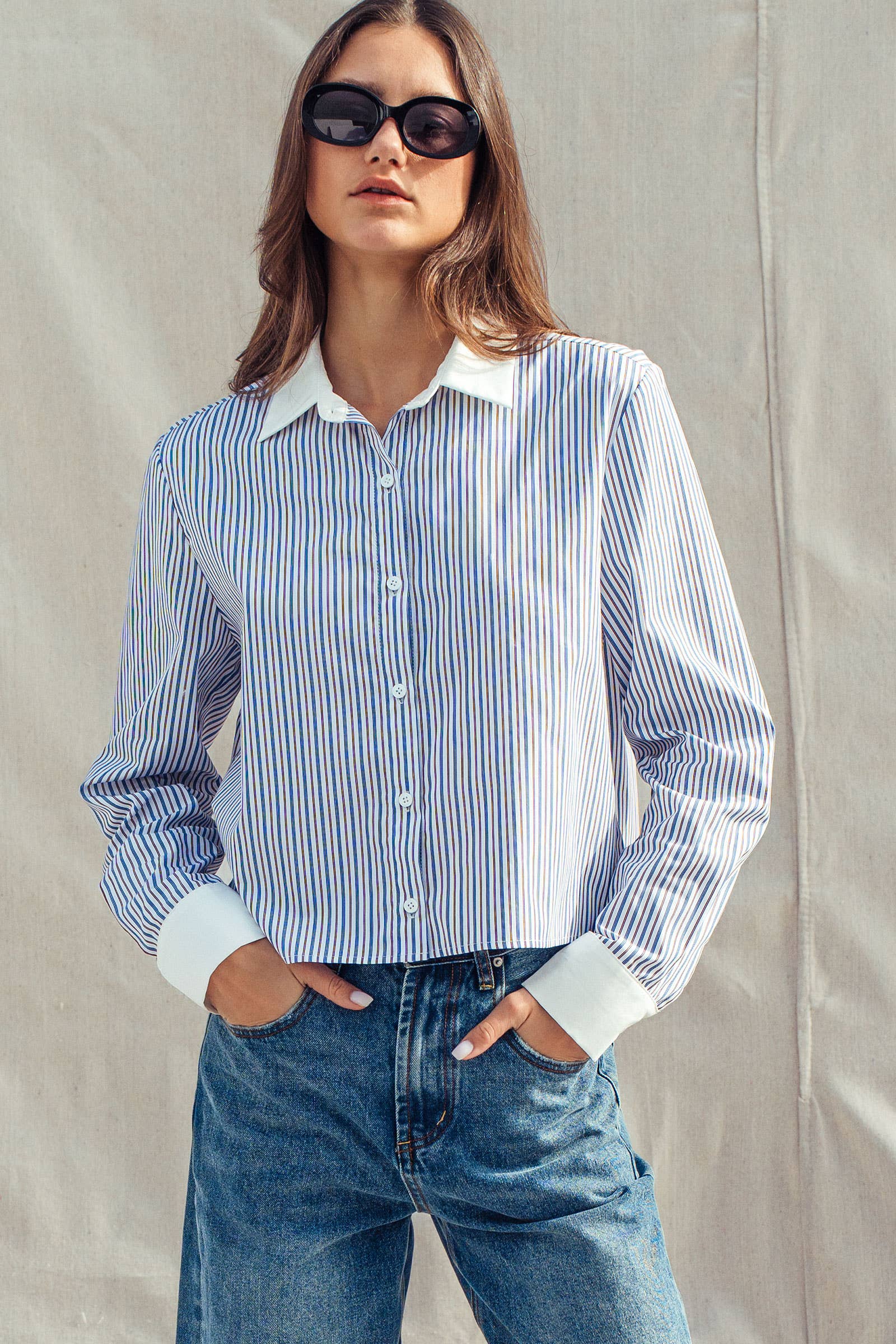 Stripe Contrast Collar Button Down Shirt