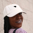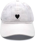 The Embroidered Heart Cap is a bestselling white pigment-dyed cotton cap, embroidered with a heart on the front and "LOVE HER BUT LEAVE HER WILD" on the right side.