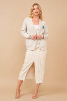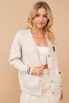 Bring a pop of color to chilly days with this playful mid-weight cardigan. Featuring soft ribbed fabric and vibrant button stripe detailing, it’s designed to keep you cozy while adding fun flair to your outfit. Perfect for layering, this sweater makes cold weather feel bright and cheerful.