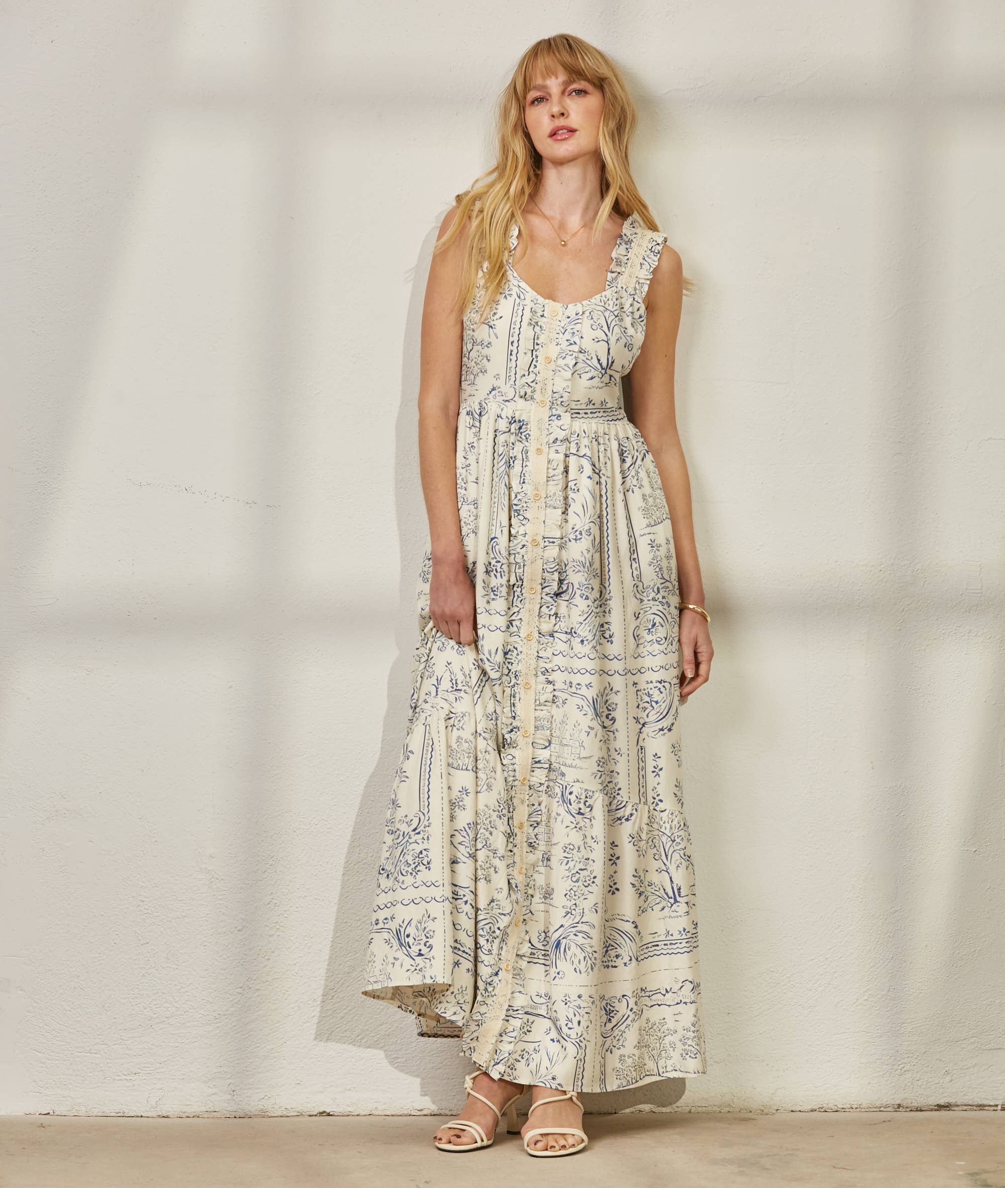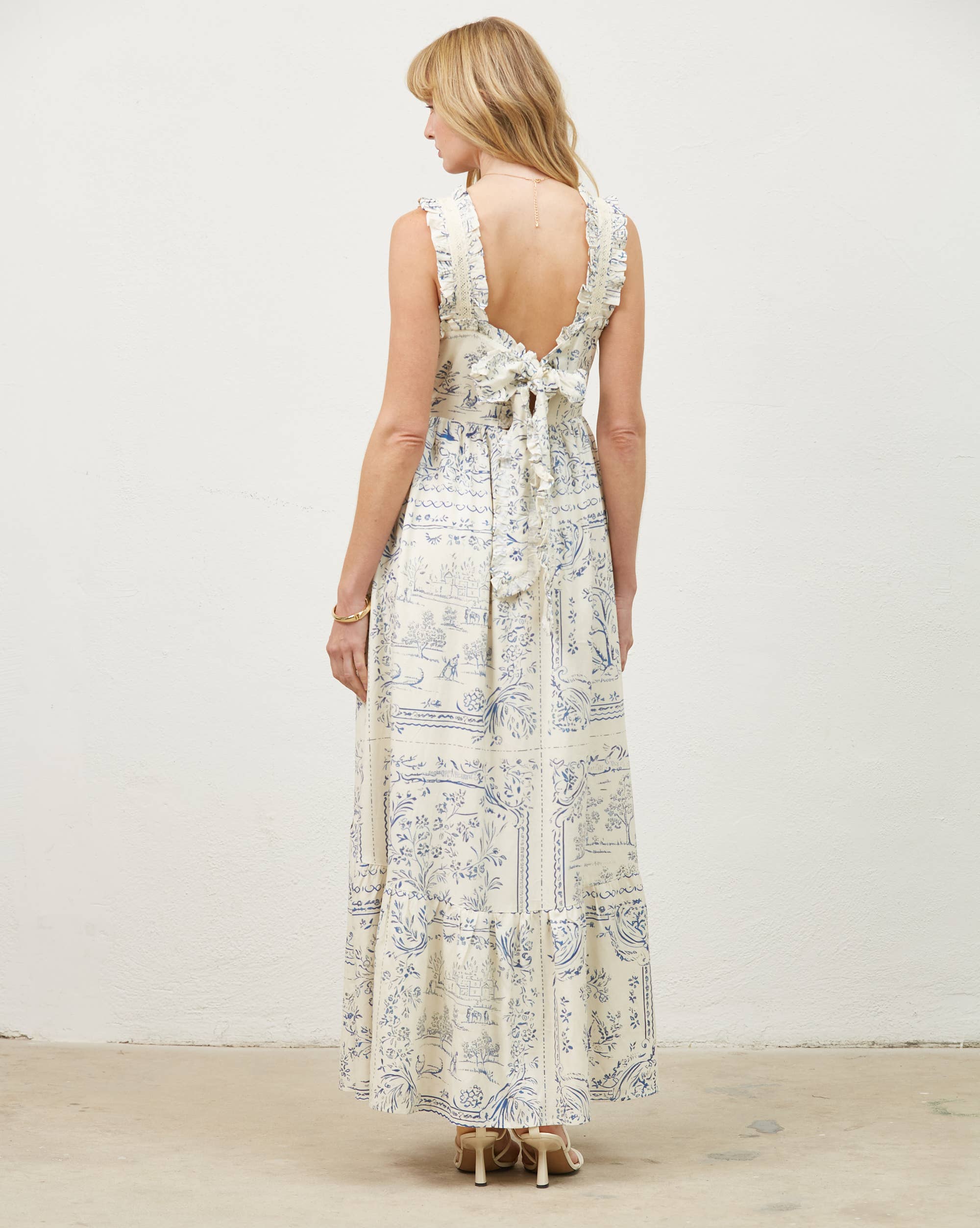 The Lucia Tie Back Maxi Dress embodies effortless elegance, with its enchanting V neckline and wide straps adorned with delicate lace and ruffle accents. The artful tie-back detail offers a refined silhouette, while the practicality of side pockets and a front placket enhances the dress's sophistication. Fully lined for comfort, it is a sublime addition to any discerning wardrobe.